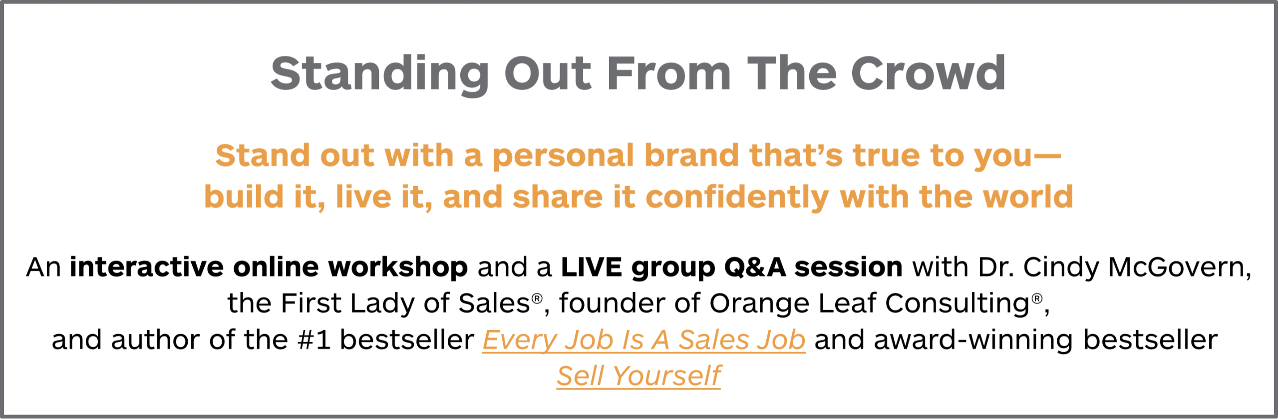 Ever wonder if the “you” people see is the real you? In Standing Out From the Crowd, you’ll learn how to create, live, and share a personal brand so authentic that anyone who meets you will see the real, amazing you—and you’ll be ready to show it.