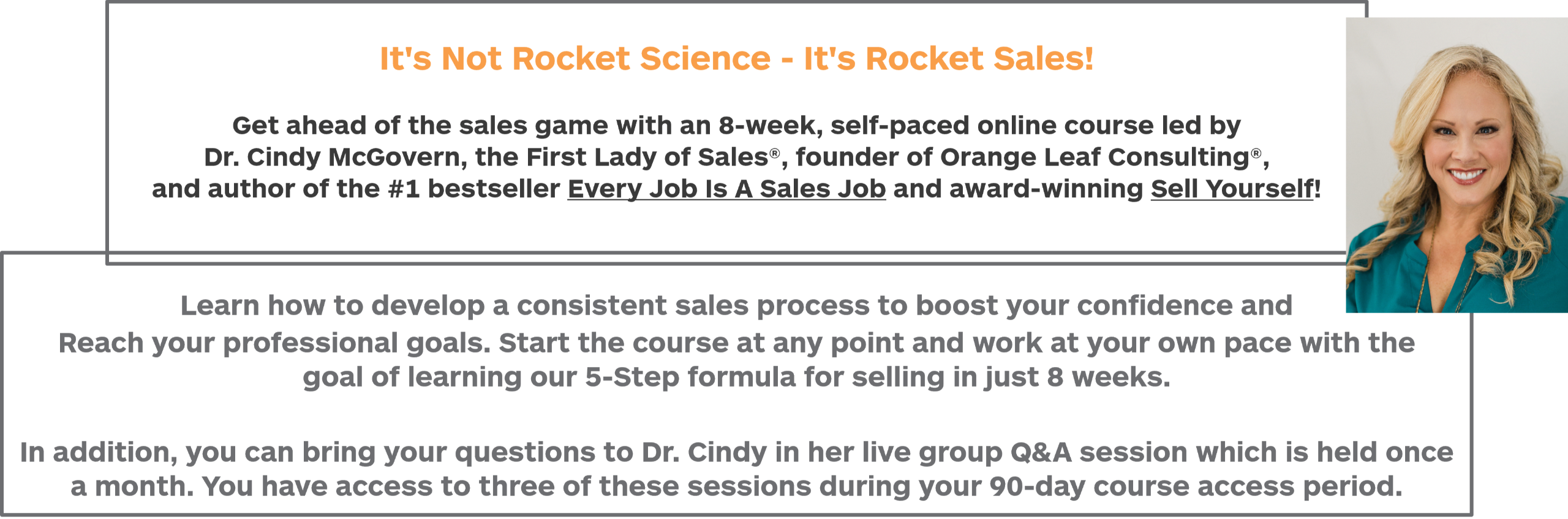 “I’m grateful for the Orange Leaf program. Each week brought a new lesson and challenge. My goal with Orange Leaf was to shorten the sales process and it delivered!